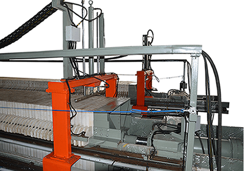 The high Pressure Filter Cloth Washer Mechanism operates with individual Plate Transport system in a sequential logic designed and programmed in the PLC.